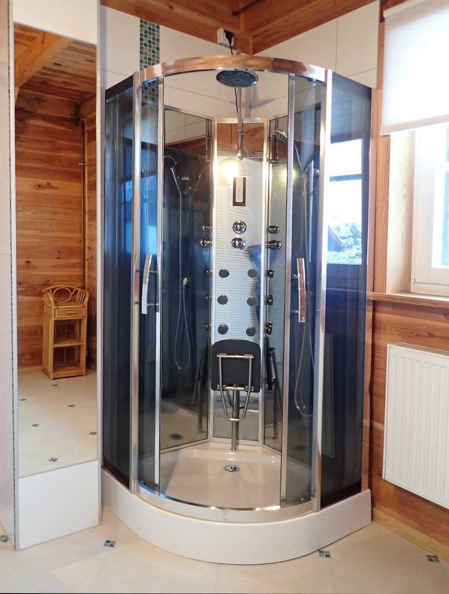 ... nowoczesna kabina prysznicowa z biczami wodnymi.